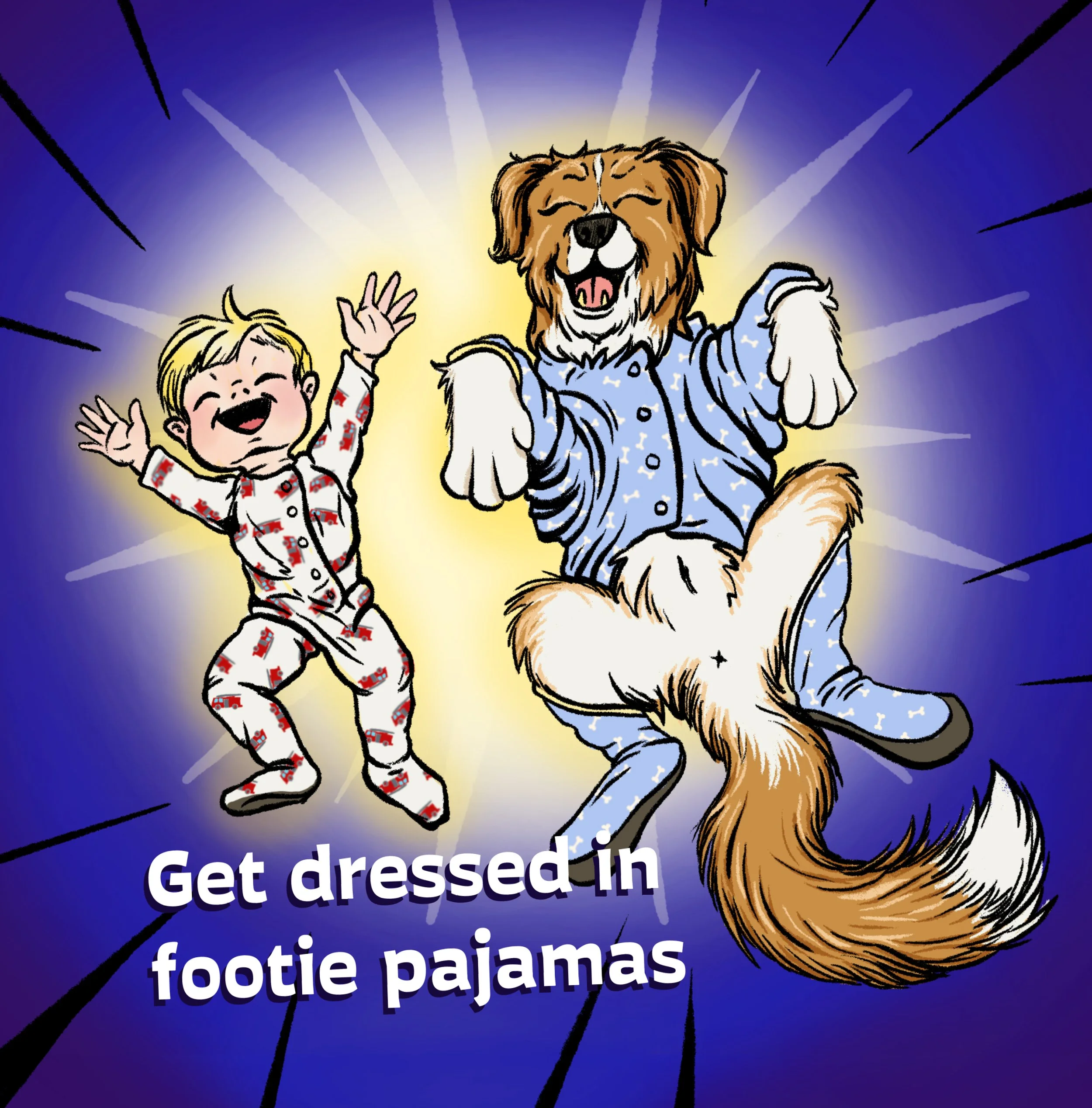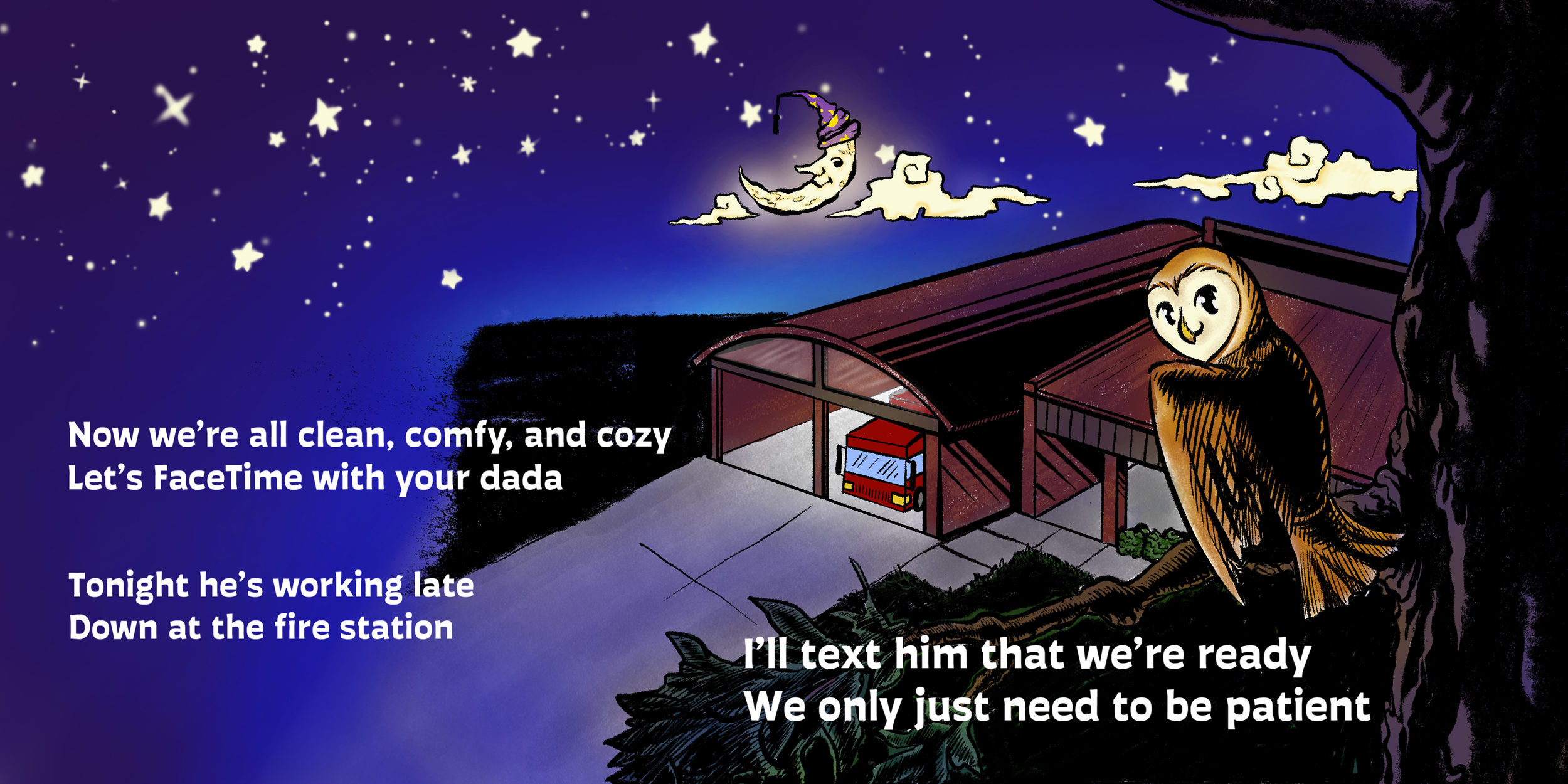 Spend an evening with Jonny the Fire Kid as he gets ready for bed. We'll follow Jonny as he prepares to end the day, one step at a time, with his canine best friend following closely behind. When you have a dad as a fireman, days and nights are often spent without him. Fire families make the best of the situation, often with a phone call, to include their family in their daily routine. This is one of the challenging (and rewarding) parts of life for a Fire Family.